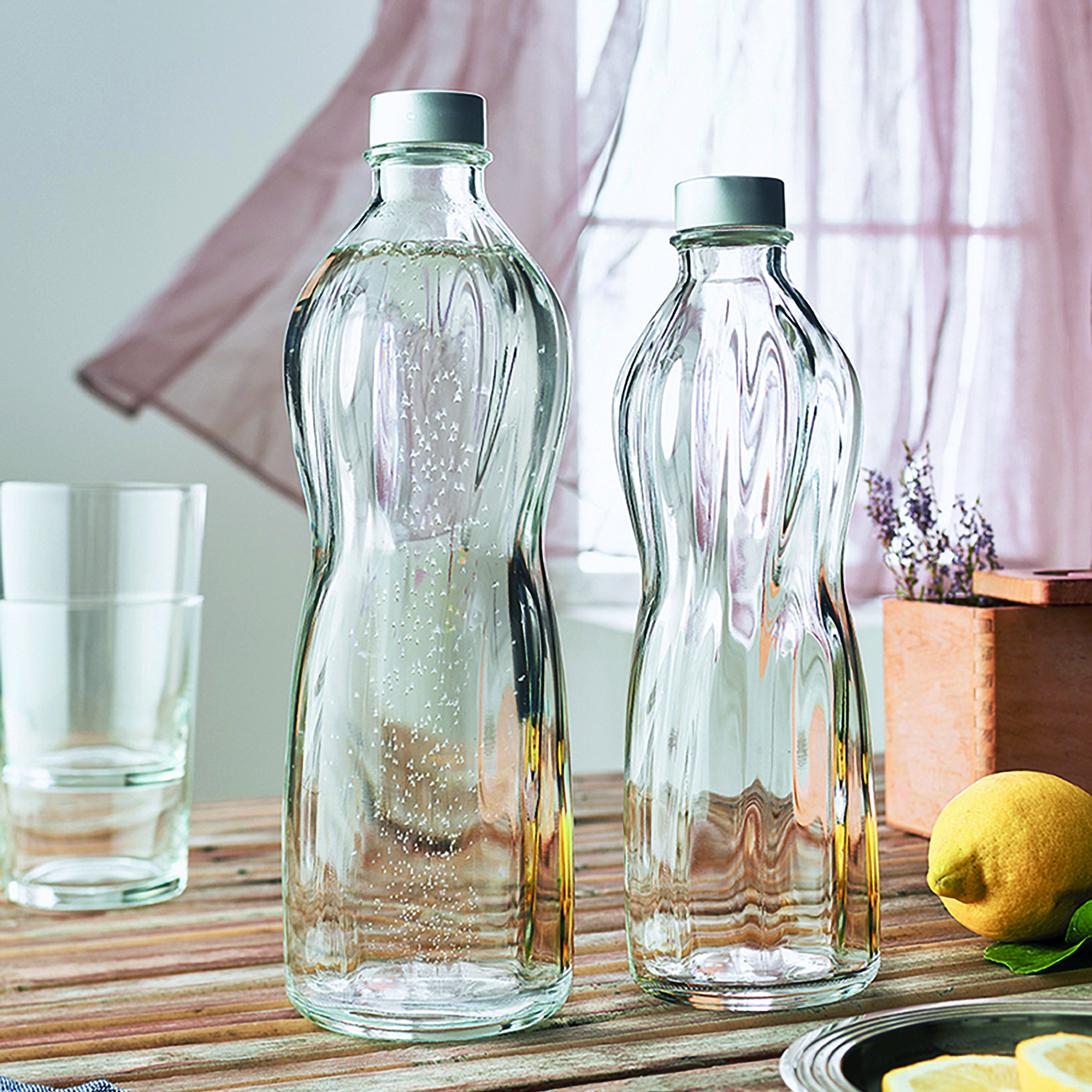Wasserkrug, Krug, Weinkaraffe, Weinkrug, KaraffenMit Verschluß, luftdicht, geformter Körper, glasklar