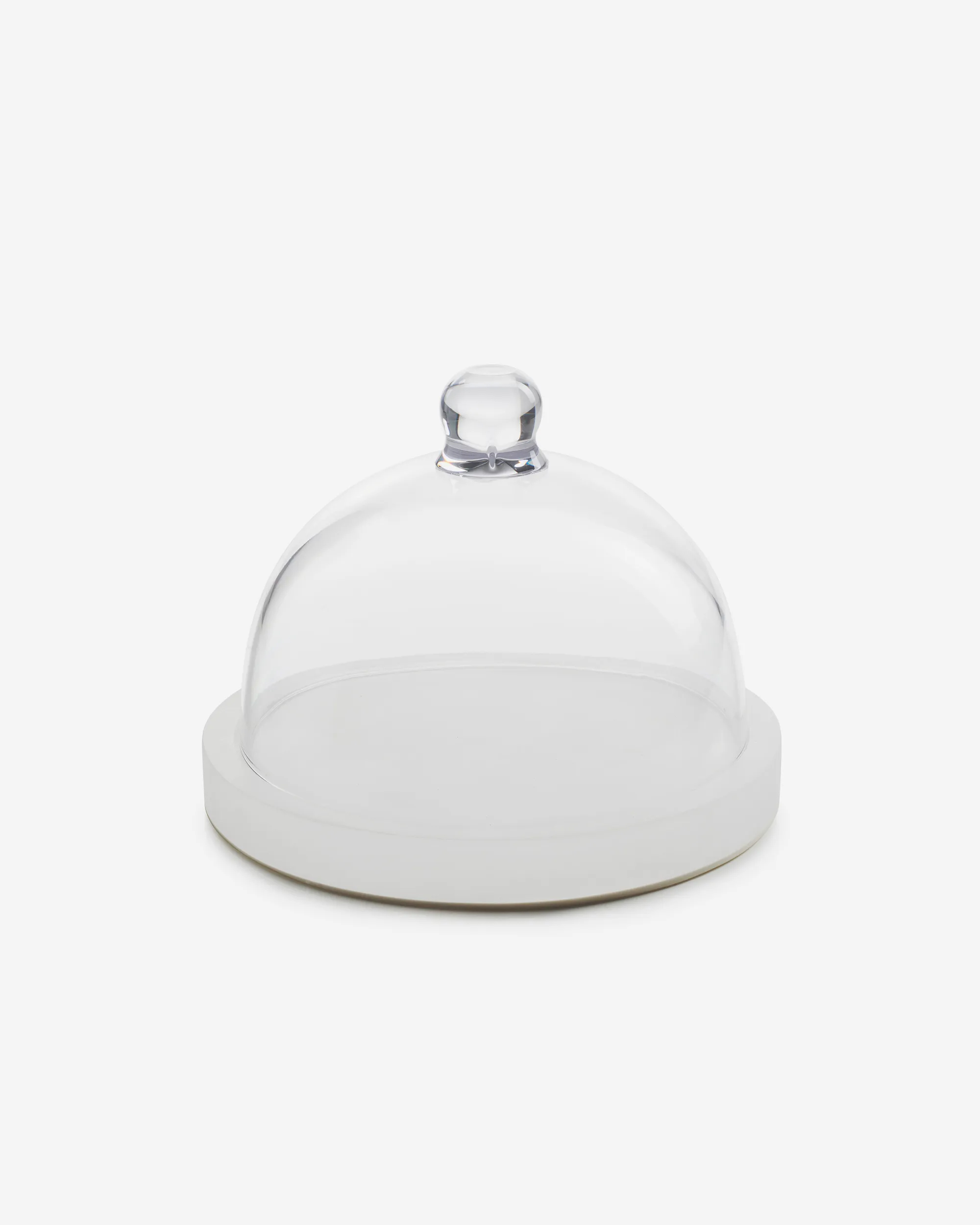 Kuppelcloche auf Unterteil, Kunststoff,  weiss/transparent