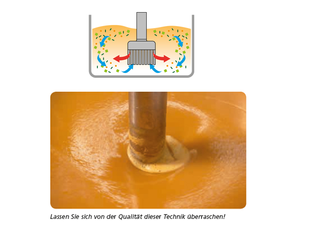 Finoman emulgeált levesek, szószok, öntetek, gyümölcsmasszákhoz, krémekhez, fagylaltokhoz. A masszát alulról vonzzák, majd az emulgeáló szerszámmal feldarabolják és összetörik. Aztán nagy sebességgel kilökődött a harang fogain keresztül. Néhány perc alatt tökéletesen emulgeálható, összekeverhető, felverhető és megköthető.