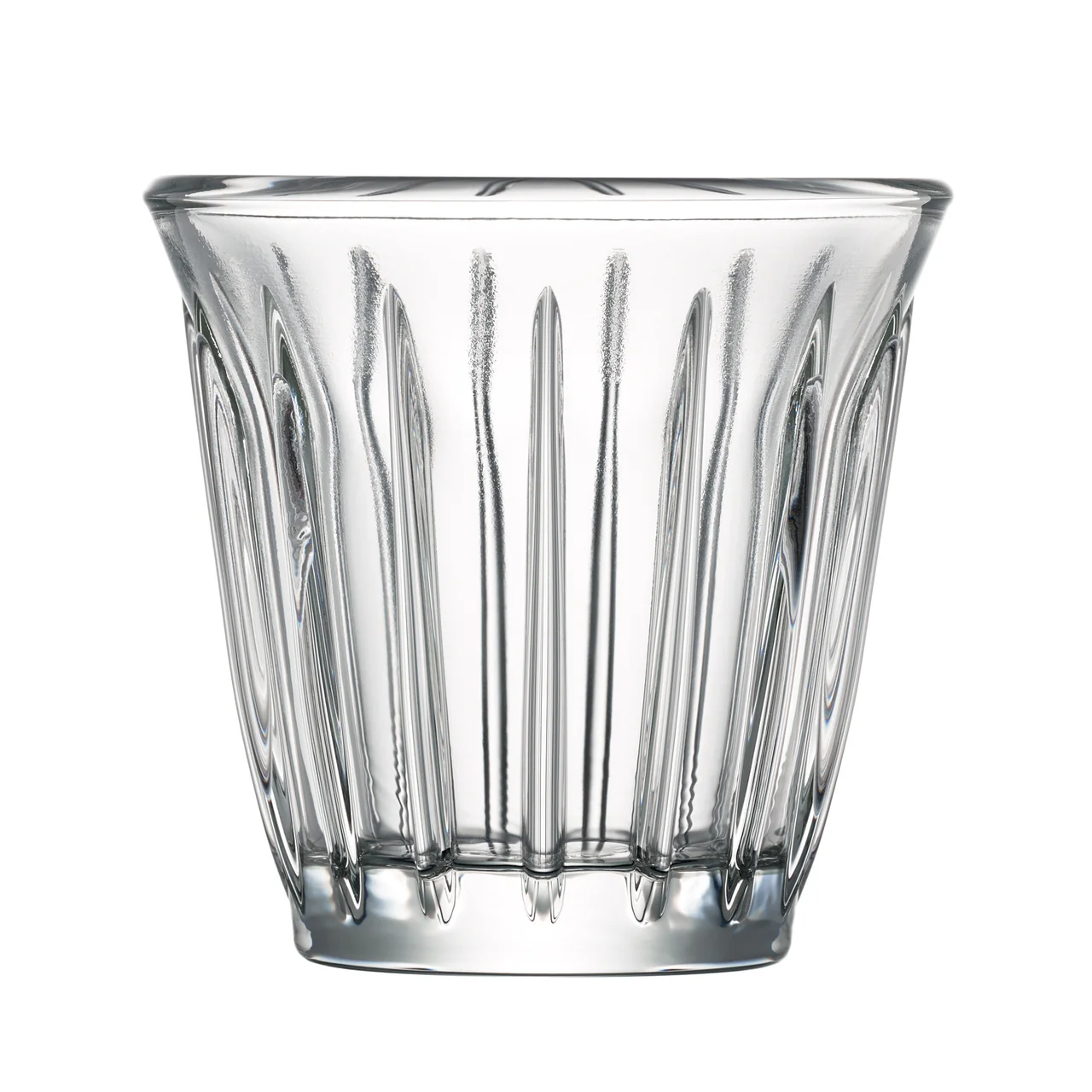 Becher "Mokka" gerippt, konisch 70/68mm, 10cl, Glas gepresst, auch als Wasser- oder Juiceglas