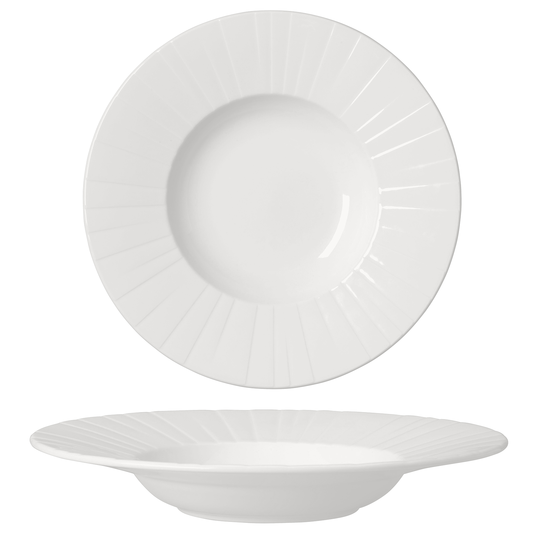 Gourmetteller tief "Steelite Alina" 28,5cm, Fahnenteller, Querlinien- relief, Hotelporzellan 9119C1226
