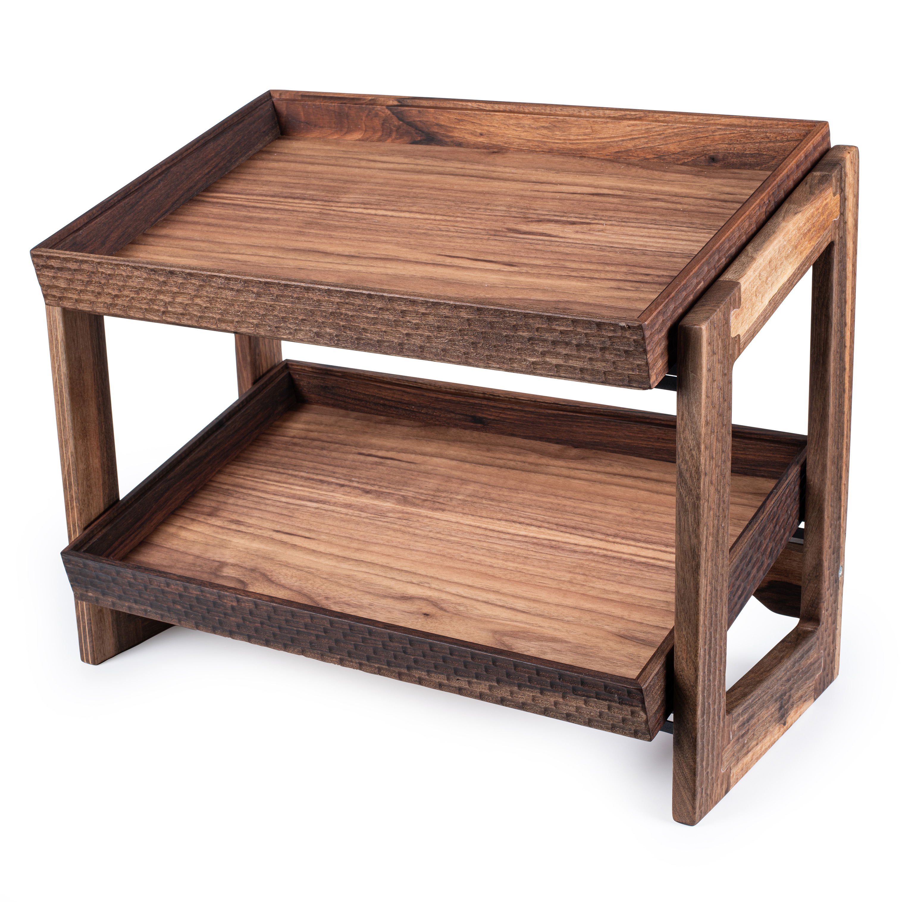 Buffet-Brot-Ständer "WoodP-natural" mit 2 GN-1/2-8,3cm Einsätzen, Wal- nussholz,Reliefschliff,33x28,5x48,5