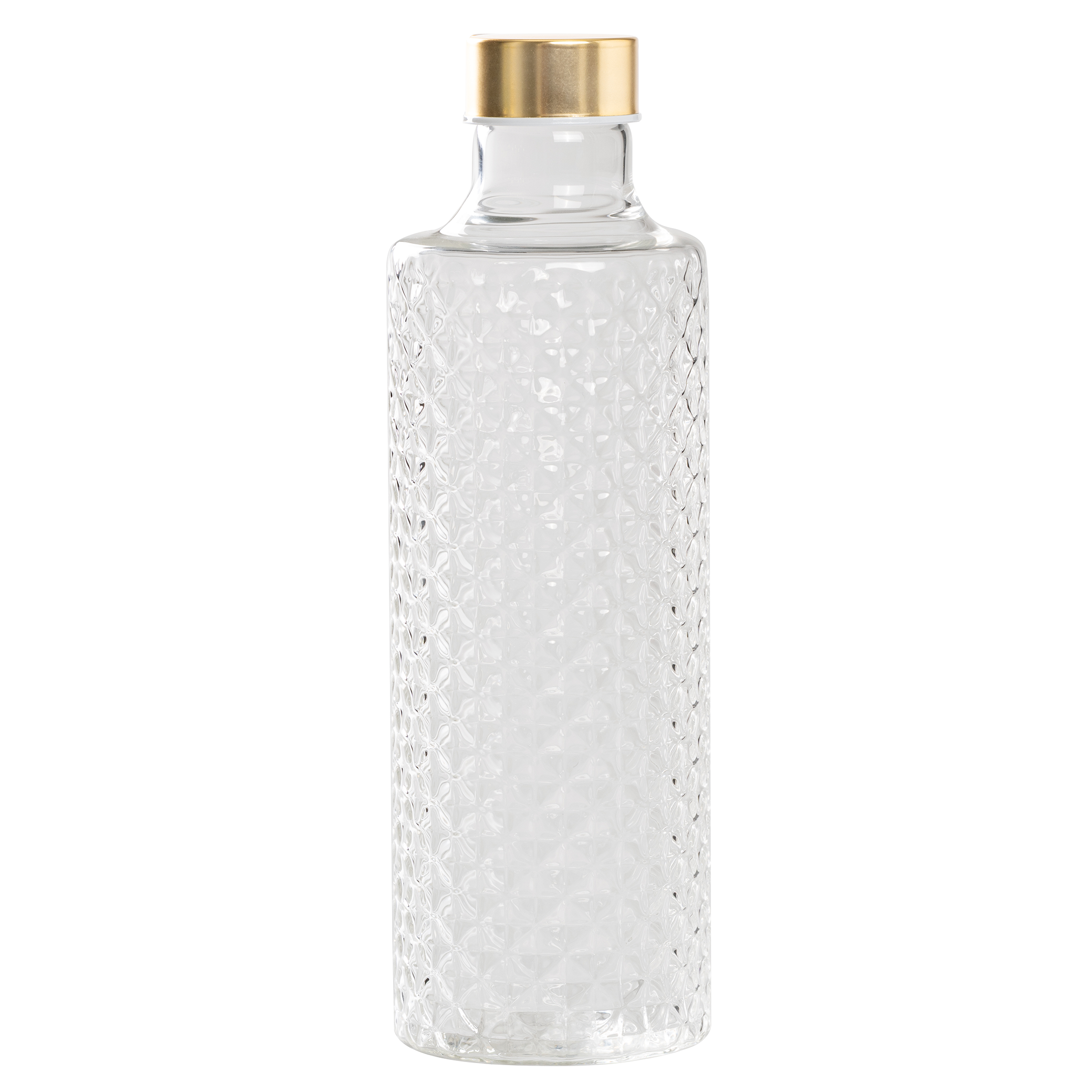 Flasche "Isolano" klar, Kristall- optik, Rautenrelief, 8,3/25,6cm, 0,96 Lit., 2 Verschlüsse inkl.